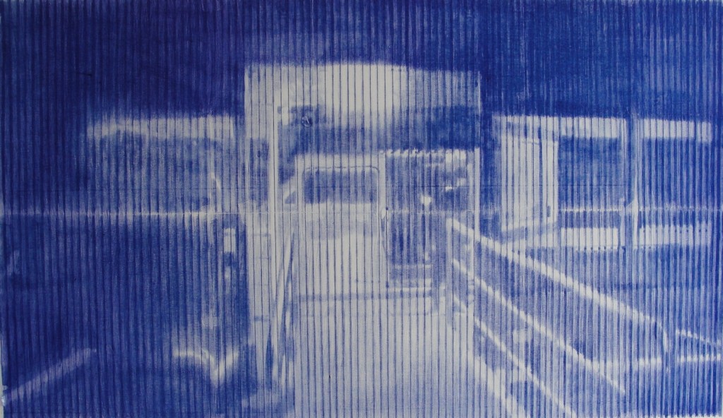 Oxana Taran : Les dessins, peintures et installations d’Oxana Taran sont en fait des interventions minimalistes dans l’espace. Son médium préféré est la peinture. Taran peint ce qu’elle voit et ressent. Ses peintures parlent d’images visuelles archétypales, qui spontanément et soudainement parviennent à son esprit, déclenchées par une large variété de stimuli : un panneau d’affichage d’une compagnie aérienne bulgare, un mur aveugle ou la façade peinte d’un immeuble d’appartements à côté d’une série de maisons modestes, etc. Ce qu’elle peint n’est pas réel. Ce sont des souvenirs d’un temps et d’un espace qui n’ont jamais été, mais qui ont été générés par le pouvoir de l’imagination. Taran matérialise, en fait, un processus mental visuel à travers le médium du langage plastique. Dans une interview, l’artiste fait référence aux « images qui bougent sans cesse », et comment elle choisit certaines de ces images qui apparaissent dans une tornade ininterrompue de pensées. Taran, elle-même, considère ses peintures comme faisant partie d’un puzzle. Elle parle de « dévoiler un fragment de vérité », ou de « représenter un fragment de la face intérieure ». Elle a donné un nom à son projet: Aerozona.