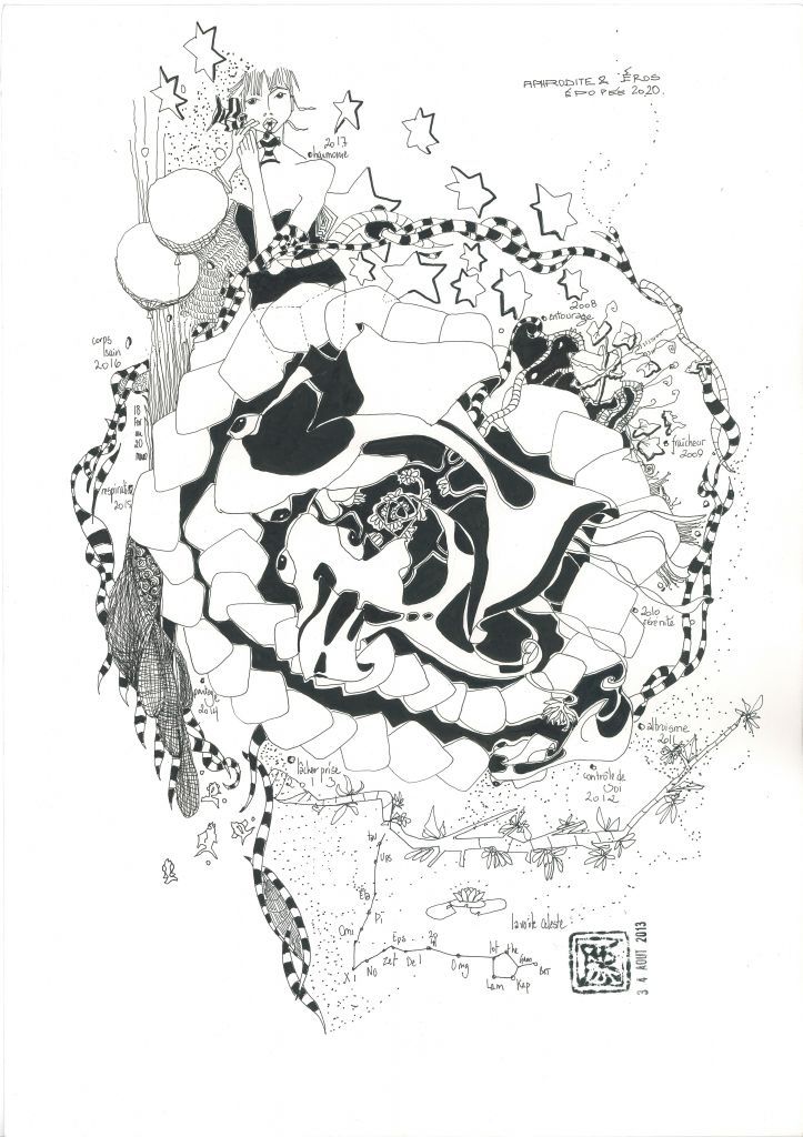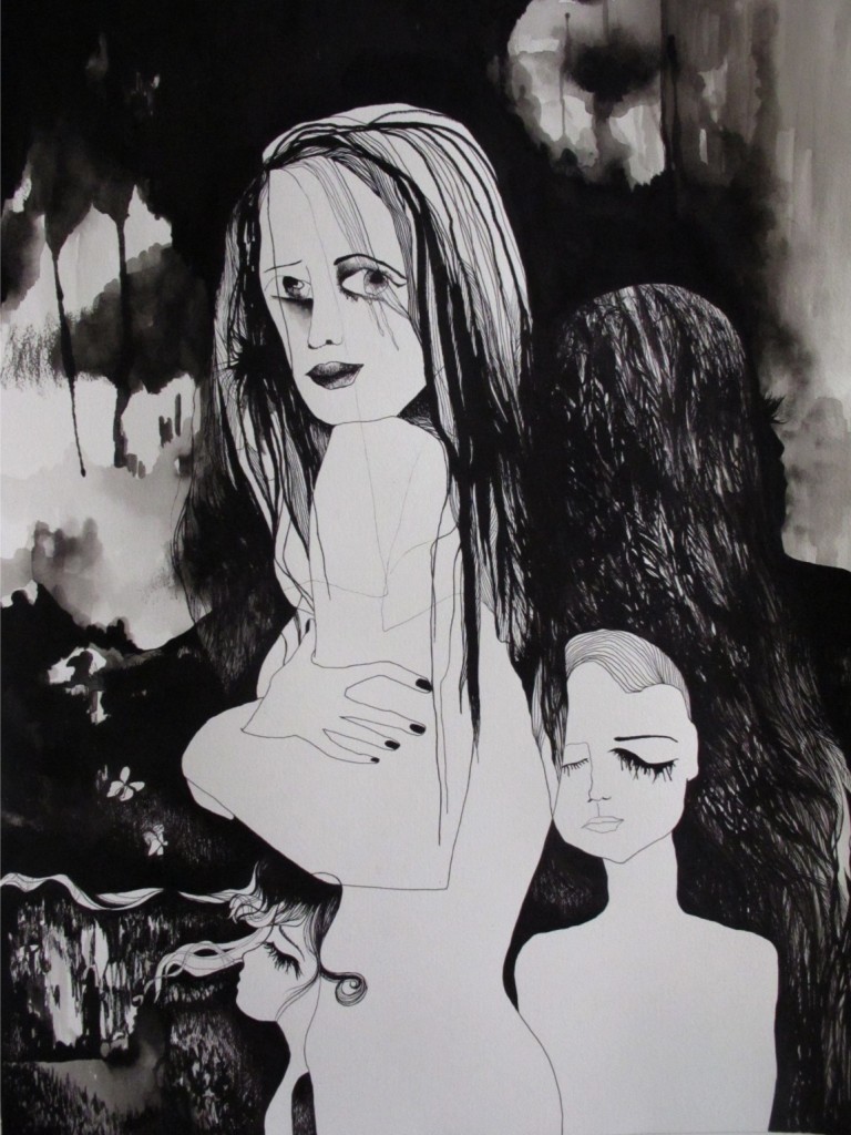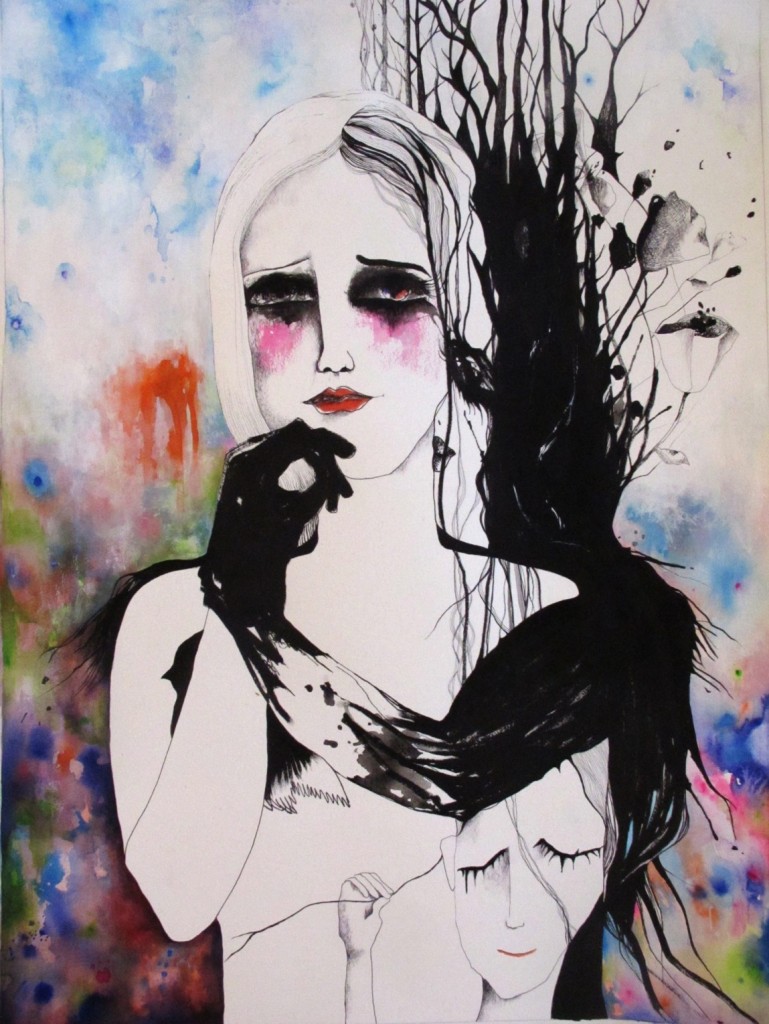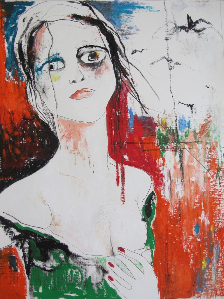Nuria Della Rosa (dessin): Dès son plus jeune âge, elle aime peindre et dessiner. De 11 à 15 ans, elle suivra des cours du soir à lʼAcadémie de Saint-Gilles auprès de Maria Kypréou et découvrira lʼaquarelle, à laquelle elle adhérera plus tard. Diplômée en Art Plastique, elle choisit de suivre des cours de Maquillages chez Jean-Pierre Finotto ce qui développera son sens de la couleur et son goût déjà prononcé pour les visages féminins. A 21 ans, ce fut le début dʼune série de tableaux à lʼaquarelle très colorés au contours définis, avec comme sujet principal la femme et sa dualité emprunts de souvenirs dʼenfance. A 30 ans lors dʼun voyage en Palestine dans le cadre dʼun long métrage, elle passe son temps libre à dessiner et à redécouvrir la joie dʼun trait libre et spontané. Elle en fait son allié. Technique du Pastel gras et crayons secs se mélangent, parfois le bic et lʼaquarelle cohabitent. La jeune artiste, nous dévoile sa sensibilité, ses émotions mais aussi ses contradictions. Une page est tournée et la voilà à présent dans une évolution ou la source dʼinspiration reste toujours la femme et ses multiples visages, elles sʼexpriment, sʼopposent pour mieux trouver leur place et leur légèreté dans lʼaboutissement du travail et de la création, peut-être plus mature mais au regard toujours sincère.