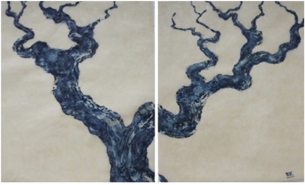 On aimerait reconnaître chez Patricia Kinard la présence d’un océan, de la brume, d’une montage ou d’une forêt. Ce sont des apparitions nées du fond de la nuit, des instants de rencontres éphémères entre deux teintes, des rythmes, des mouvements. Car, comme l’écrit Pascal Quignard (« Tous les matins du monde »), « la musique est simplement là pour parler de ce dont la parole ne peut parler. En ce sens, elle n’est pas tout à fait humaine ».