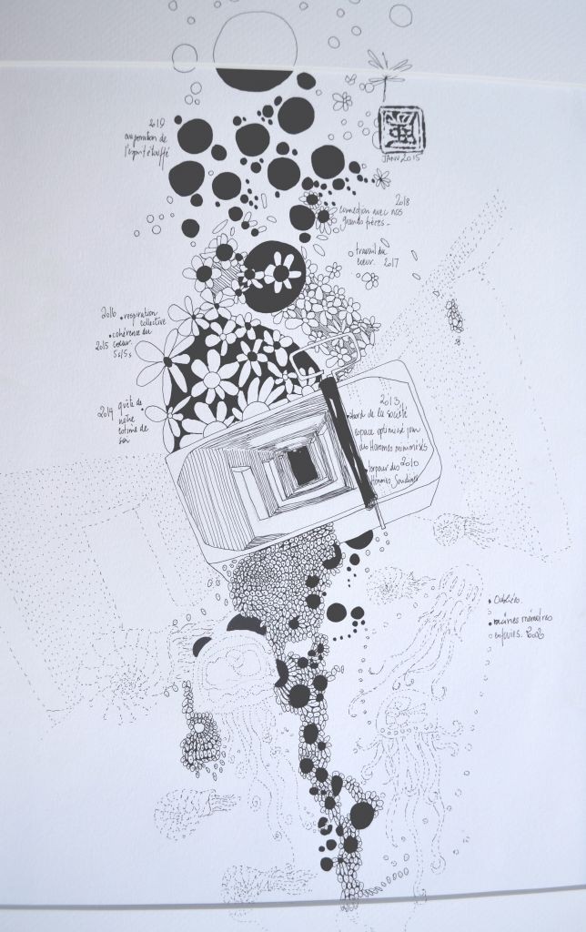 Anne Marie Finné déploie des paysages labyrinthiques au trait intense etpresque évaporé.